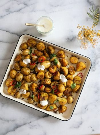 Je vous donne ici ma recette des Bombay potatoes : quelques épices, de l’huile d’olive, de l’ail et le tour est joué !
