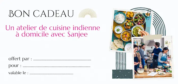 à la uneEvènementsRecette de fêteIdée cadeau de Noël ★ by sandra sanjeenovembre 5, 2025novembre 19, 20250106 OFFREZ OU OFFREZ-VOUS UN COURS DE CUISINE INDIENNE 250€ POUR UN COURS POUR 4 PERSONNES / PARIS * Offre valable pour toute demande effectuée avant le 25 Décembre, le bon cadeau est valable 1 an.